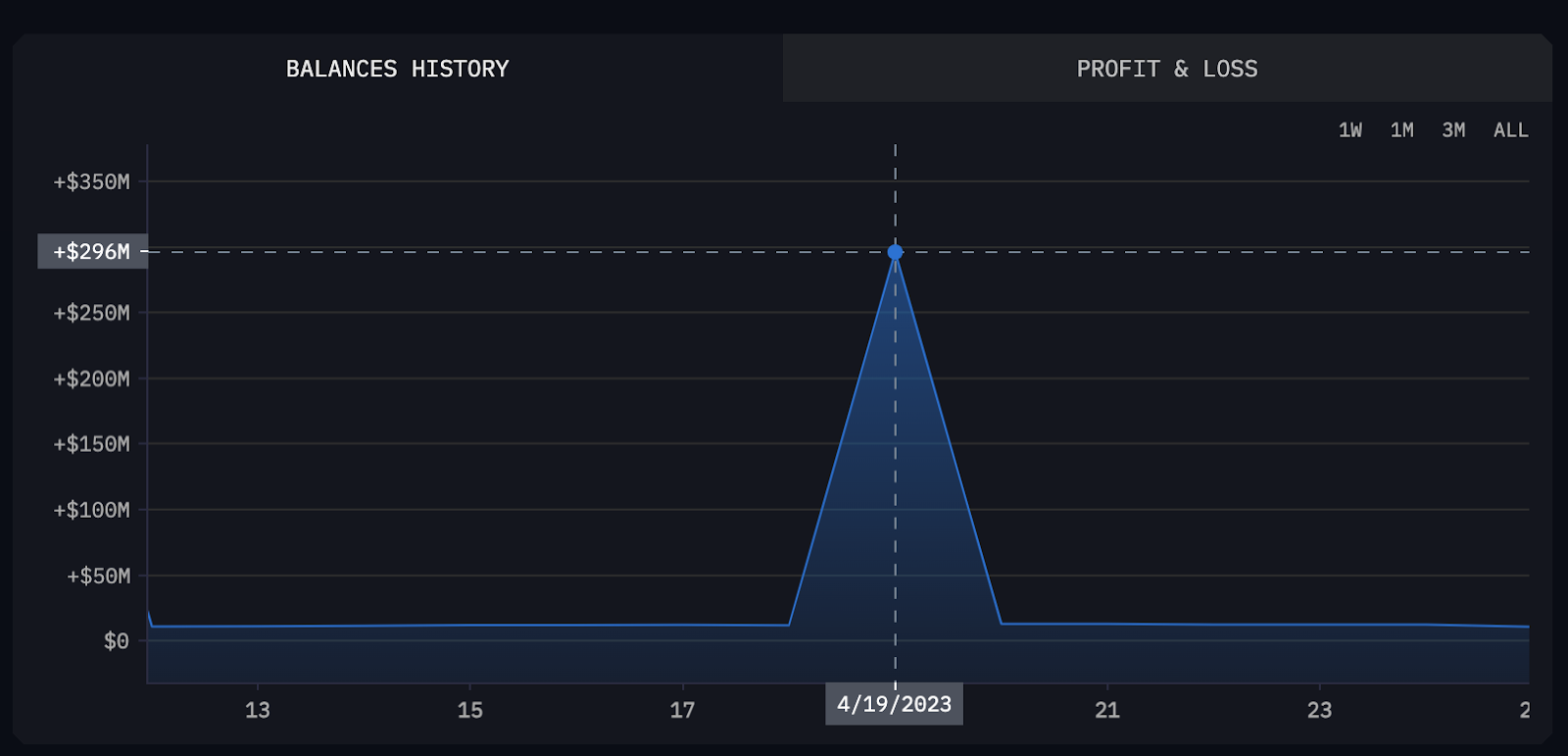 وكما هو موضح في الرسم البياني أدناه، نقل مؤسس الإيثر عملات قيمتها 283 مليون دولار من الإيثر في 19 أبريل. وقد بدأ سعر ETH في التذبذب خلال 48 ساعة فقط لينخفض لاحقًا بنسبة 13% من 2102 إلى 1840 دولار بحلول إغلاق 25 أبريل.