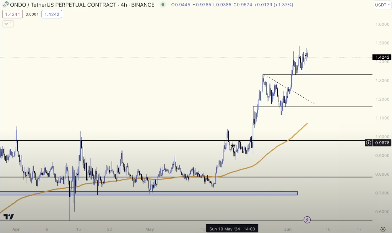 يتم تسليط الضوء على Ondo Finance كلاعب رئيسي في قطاع الأصول في العالم الحقيقي (RWA). مع استمرار حركة السعر الصعودية والاهتمام الكبير بالسوق ، تبرز ONDO.
