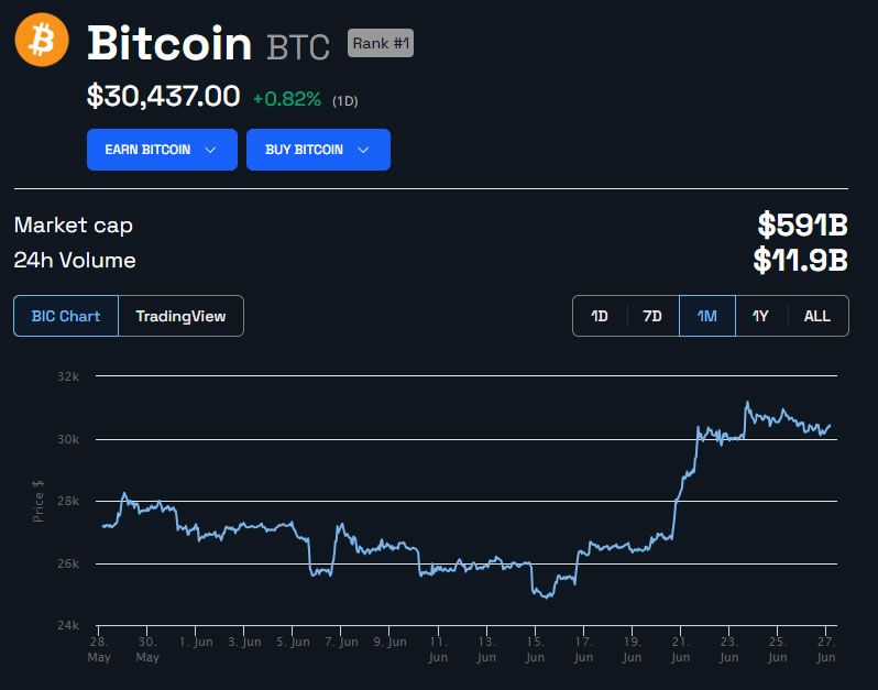 واكتسب الأصل المشفر نصف بالمائة في اليوم، ليتم تغييره عند 30.437 دولار في وقت كتابة هذا الخبر.