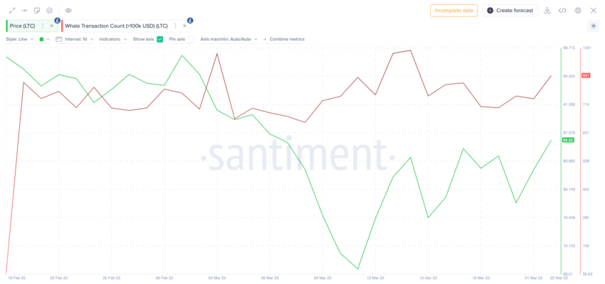 وربما يخترق اللايتكويت LTC منطقة 100 دولار مع استمرار نشاط حيتان التشفير.