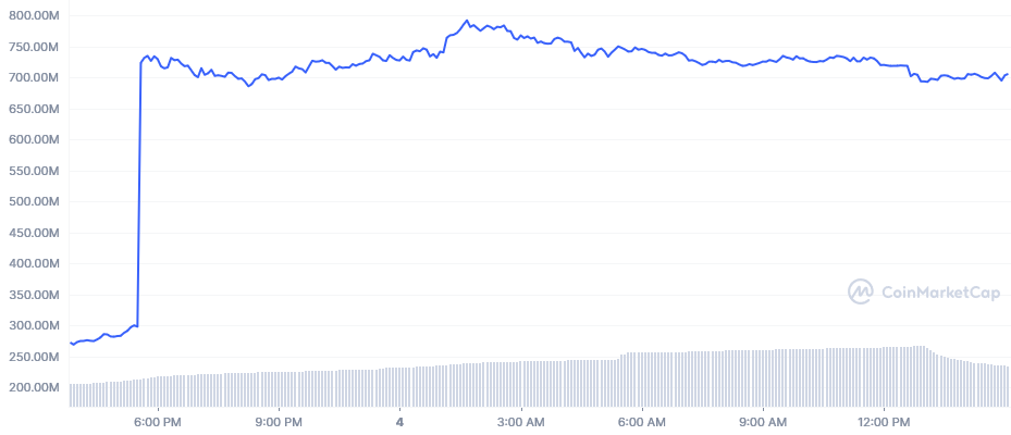 بينما أظهرت بيانات البورصة أن حجم التداول قد تجاوز 200 مليون دولار أمريكي. وكان مستخدمو بينانس Binance قد أودعوا أكثر من 4 مليارات دولار في البورصة خلال يومين لزراعة العملة.