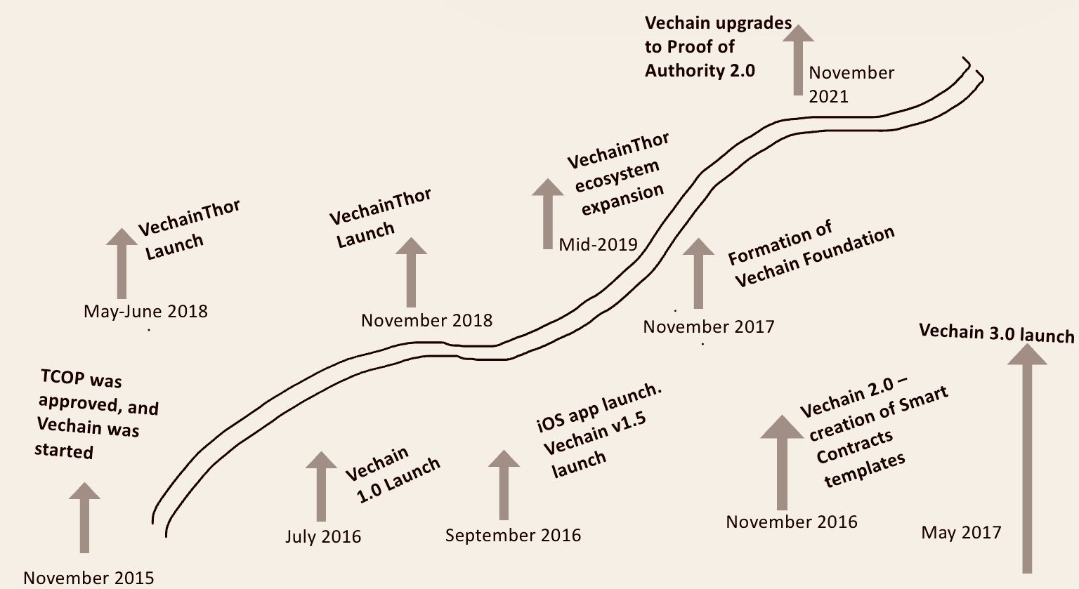 وظهر الرمز المميز في المرة الأولى في منتصف ٢٠١٧ عند نحو ٠.٢٦ دولار وكان السعر يتأرجح حتى ارتفع في أكتوبر ٢٠١٧ كما شهد ارتفاع كبير خلال سباق العملات المشفرة في أواخر عام ٢٠١٧ حتى أوائل عام ٢٠١٨ وشهدت زيادة بنسبة ٢٨٠٠% عقب فيت لتصل من ٠.٢٤٠٣٠١ دولار إلى ٧.٠٣ دولار أمريكي وهذا ناتج من الاتجاه التصاعدي إضافة إلى تقدم منصة فيتشان ثور والكثير من الشراكات.