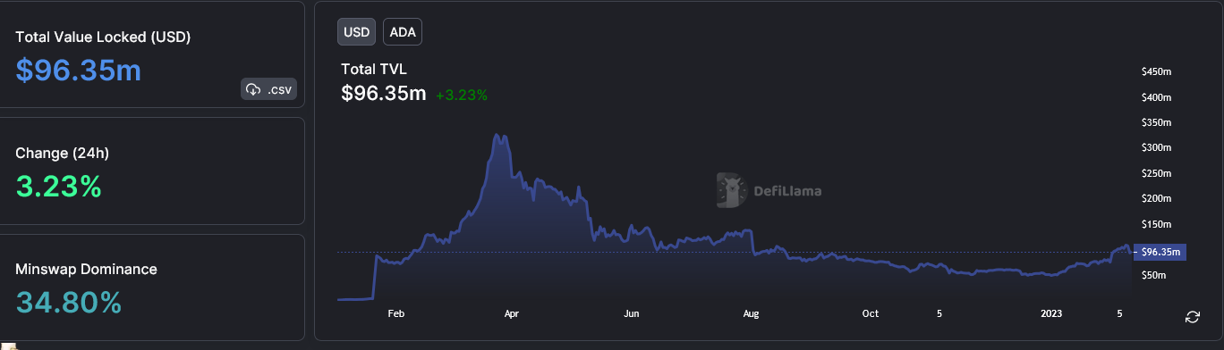 هذه الترقية تأتي في الوقت الذي تجاوزت فيه إجمالي القيمة المقفلة (TVL) لتطبيقات التمويل أو المالية اللاّمركزية DeFi القائمة على كاردانو Cardano حاجز 100 مليون دولار الأسبوع الماضي، وهو أعلى مستوى في ثمانية أشهر. ولقد سيطرت منصتي Minswap وWingriders على أكثر من 50٪ من هذه الأموال المحجوزة. حسب ما تظهر بيانات DeFiLlama.
