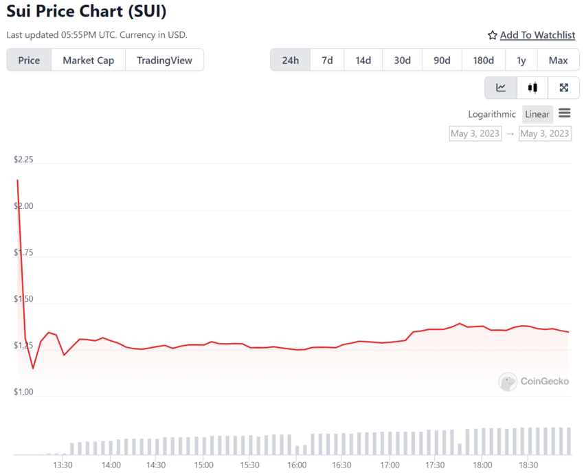 وكذلكلم يمر خبر إصدار الشبكة الرئيسية مرور الكرام على سعر عملة Sui. فقد نالت الشبكة حظها من الهبوط للقيمة السوقية الخاصة بأكبر 100 عملة مشفرة. ففي وقت كتابة هذا الخبر وصلت العملة عند مستوى 63 لتتفوق على عملات مثل NEO و ZIL الموجودة منذ سنوات في سوق الصناعة.
