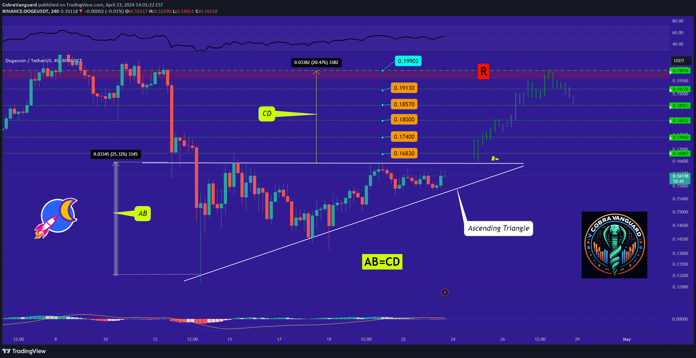 الرسم البياني لسعر عملة دوجكوين DOGE المصدر  : صفحة  CobraVanguard على منصة Tradingview