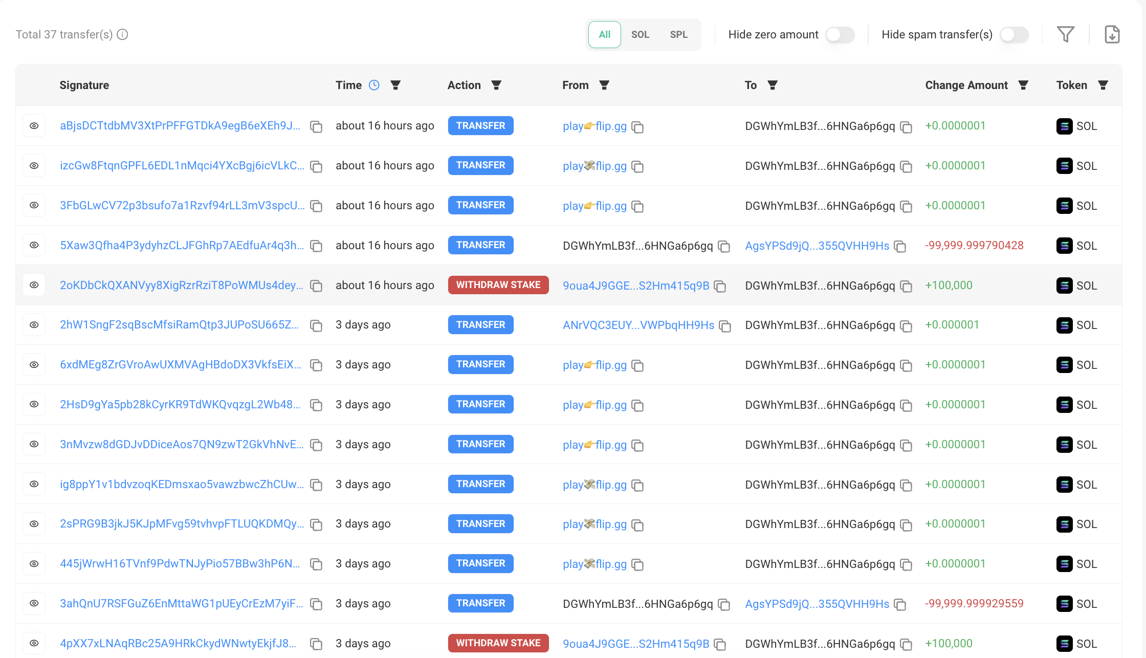 تظهر البيانات من Solscan أن حوت سولانا قام بإلغاء تثبيت 100,000 عملة SOL قبل 15 ساعة ونقلها إلى بورصة العملات المشفرة الرائدة بينانس. ويأتي ذلك بعد ثلاثة أيام فقط من قيام نفس المستثمر بإلغاء تثبيت 100,000 عملة SOL ونقل الأصول إلى نفس البورصة.
