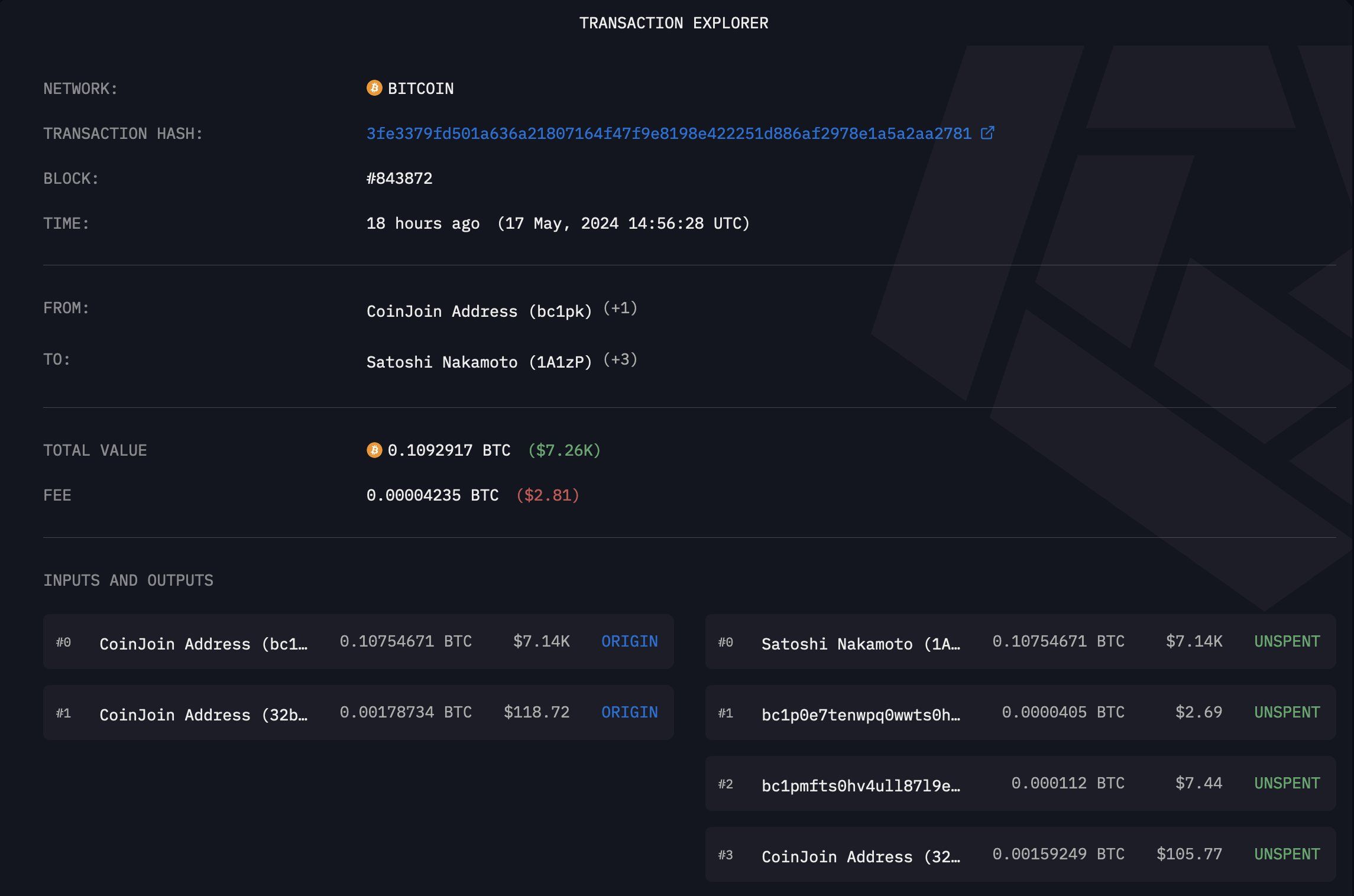 وقد أعاد النقل العرضي إشعال التكهنات حول هوية ساتوشي ناكاموتو ومصير بيتكوين المخزنة في عنوانه. يحتوي العنوان المرتبط على كمية كبيرة من عملات البيتكوين (BTC).