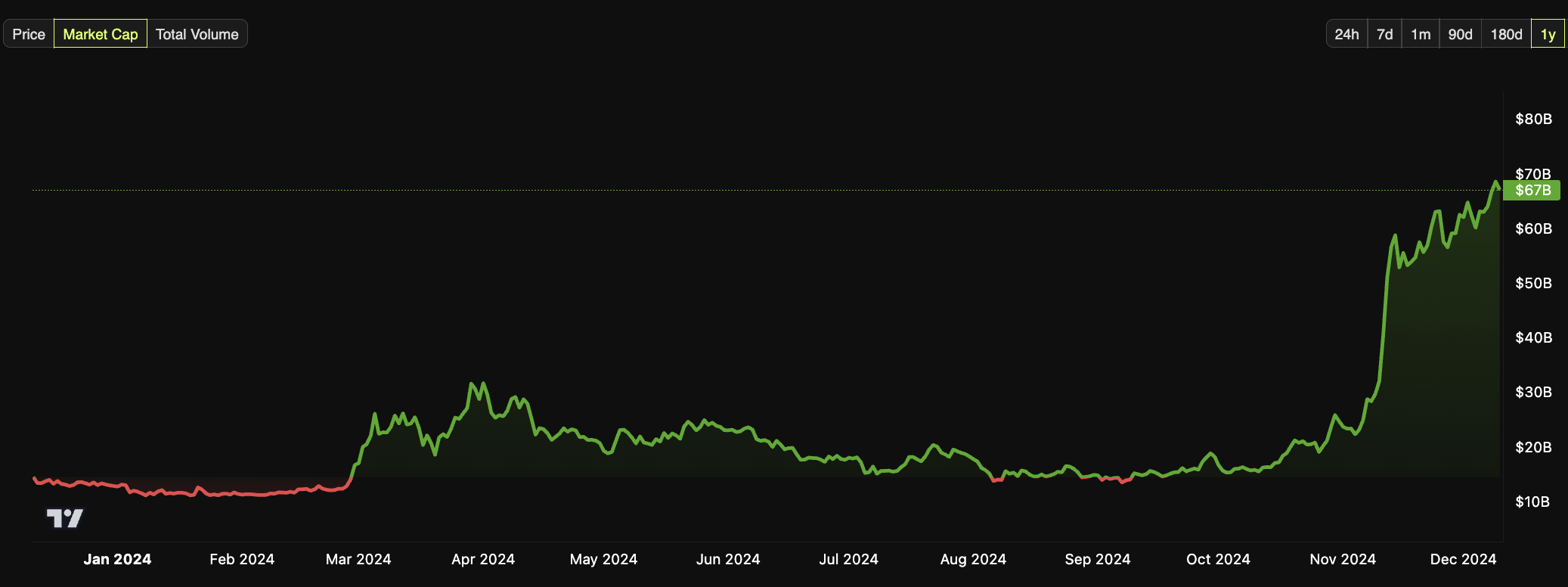 Dogecoin Annual Market Cap Performance, 2024.