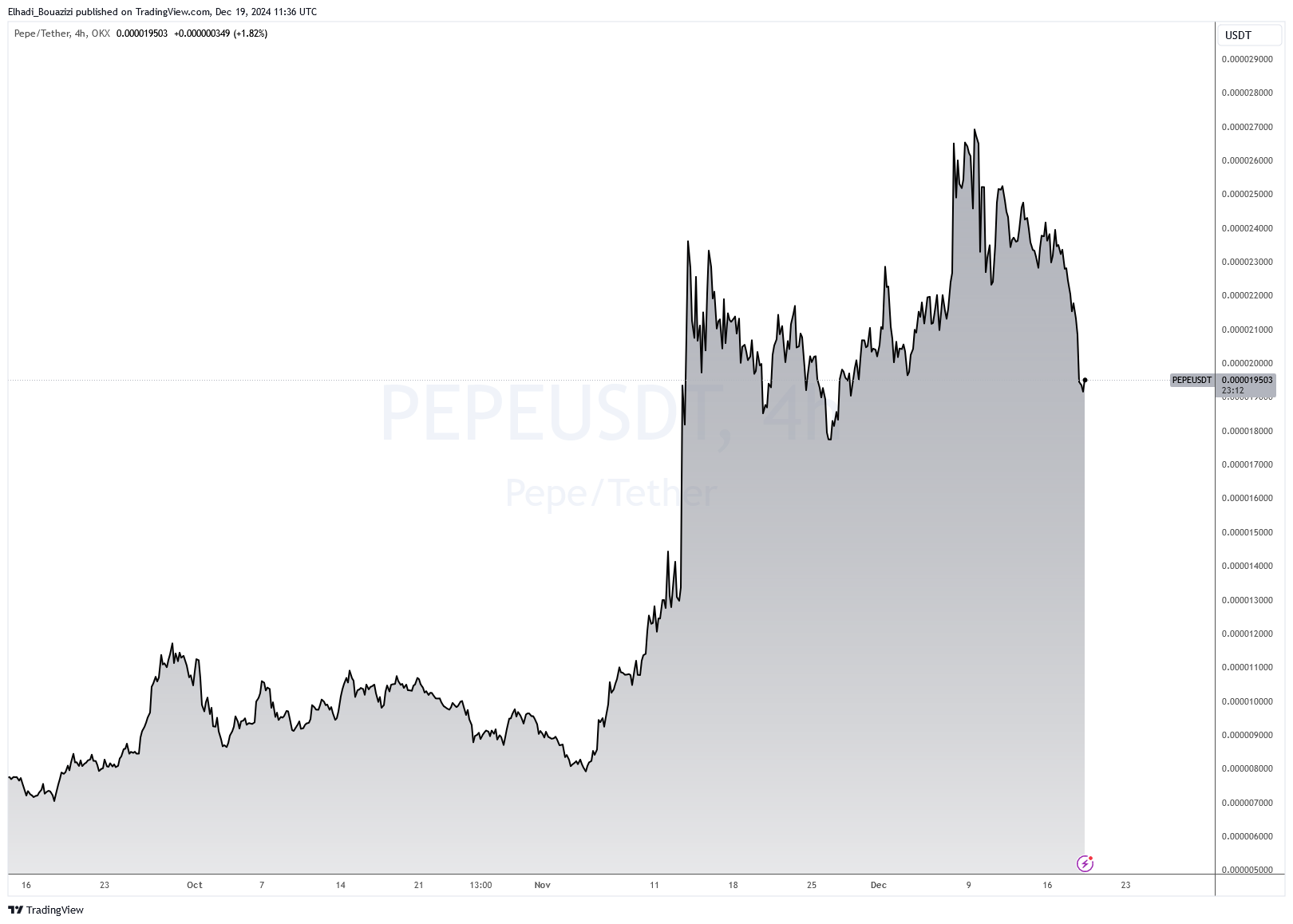 ترافقت هذه الخسائر مع تراجع عام في سوق العملات الرقمية، حيث أثرت قرارات الاحتياطي الفيدرالي (FED) الخاصة بخفض أسعار الفائدة بـ 25 نقطة أساس. ومواقف رئيسه حيال احتياطات البيتكوين، على مزاج السوق. وقد هوت عملة PEPE بنحو 11% خلال الساعات الـ24 الأخيرة، لتتداول حالياً حول مستوى 0.00001916 دولار.