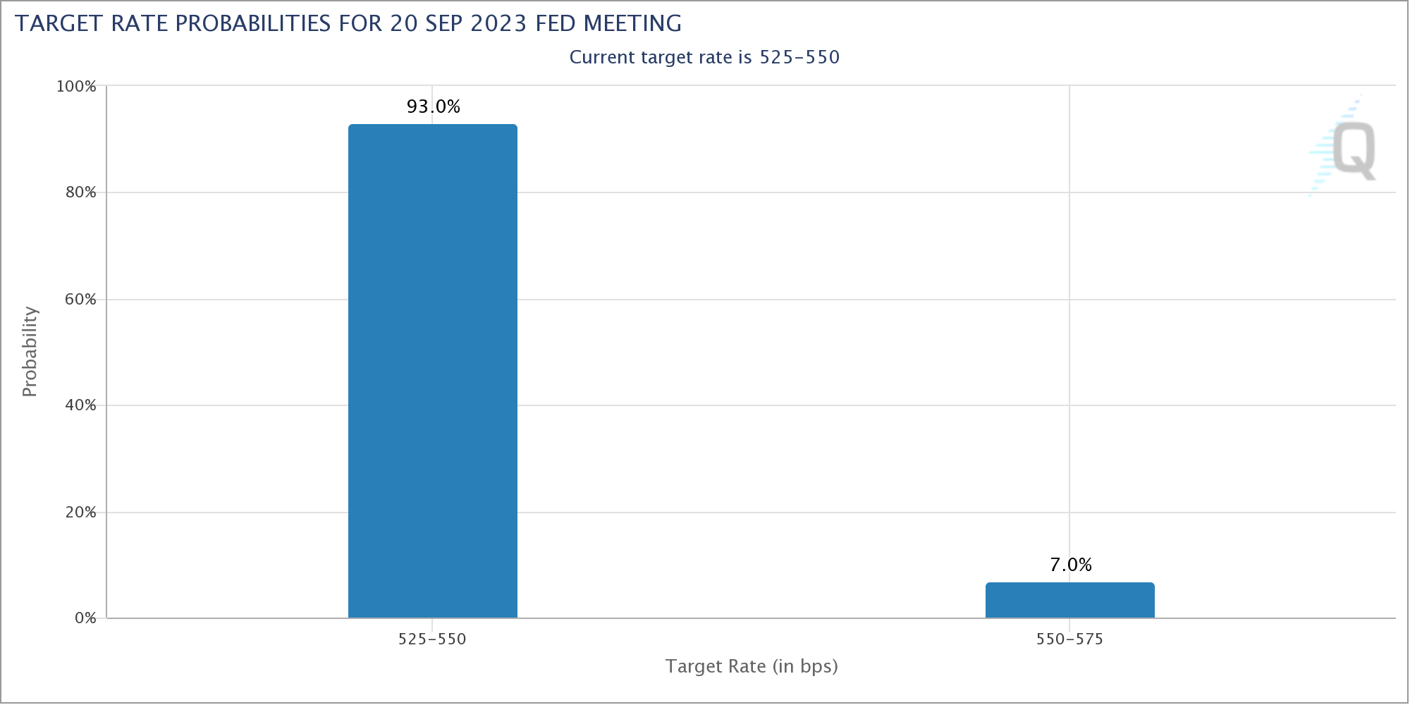 بعد إصدار بيانات التوظيف. ارتفعت الرهانات على أن الاحتياطي الفدرالي سيبقي على أسعار الفائدة ثابتة دون تغيير في اجتماعه المقبل في 19-20 سبتمبر إلى احتمال 93%. وفقًا لبيانات بورصة شيكاغو للعقود المستقبلية CME FedWatch.