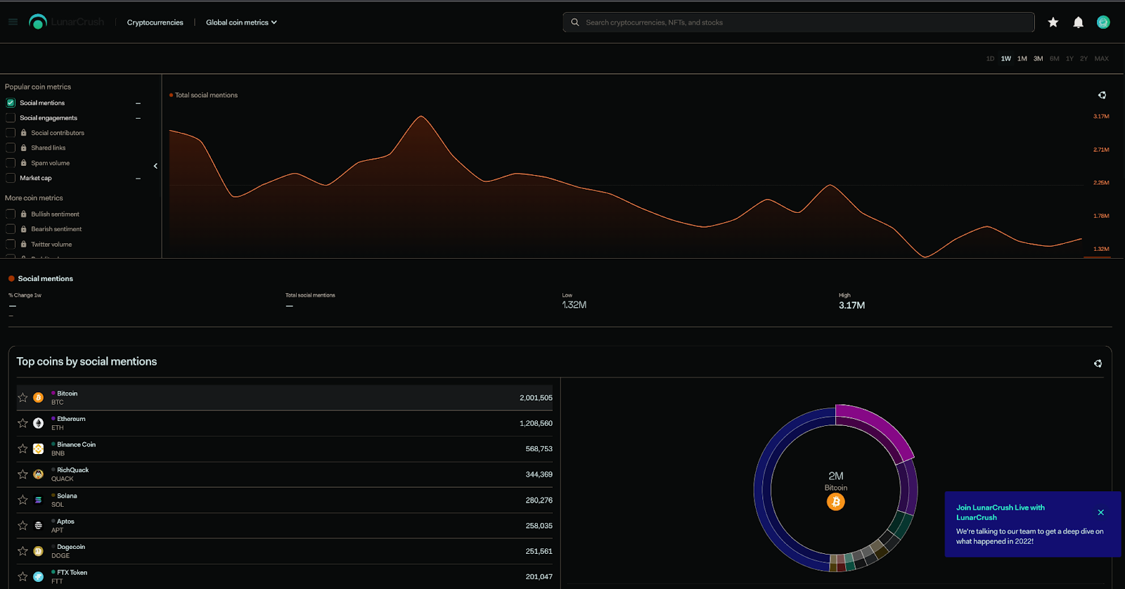 أما عن تبني العملات الرقمية، فقد زاد الإقبال على العملات بنحو 2 مليون إبان الأسبوع الماضي وفقاً لشركة Lunar Crush، لتحتل الإيثيريوم المرتبة الثانية بنحو 1.2 مليون وعملة بينانس المرتبة الثالثة بأكثر من نصف مليون وقد تضاءلت النسبة الأخيرة بسبب الخوف من قرار بينانس بتعليق عمليات السحب من البورصة خلال هذا الأسبوع.