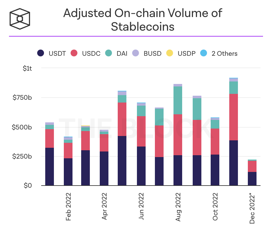 وقد لكن هذا لم يمنع من انخفاض القيمّة الإجمالية المقفلة من 211.4 مليار دولار في يناير إلى 55 مليار دولار في ديسمبر بخسارة مقدارها 73.97%، بما يدل على انخفاض الاستثمار على الرغم من زيادة المستخدمين، كما شهد عدد المحافظ النشطة الفريدة زيادة نسبتها 50% سنوياً من 1.58 مليون في عام 2021 إلى 2.37 مليون في عام 2022.