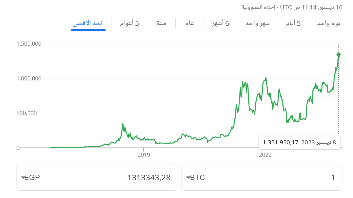 و مع استمرار سعر البيتكوين بالدولار في الارتفاع في الشهرين الماضيين. و أيضا استمرار تفاقم معدلات التضخم. من المنطقي أن نشهد تسارع كبير في ارتفاع البيتكوين بالجنيه المصري.