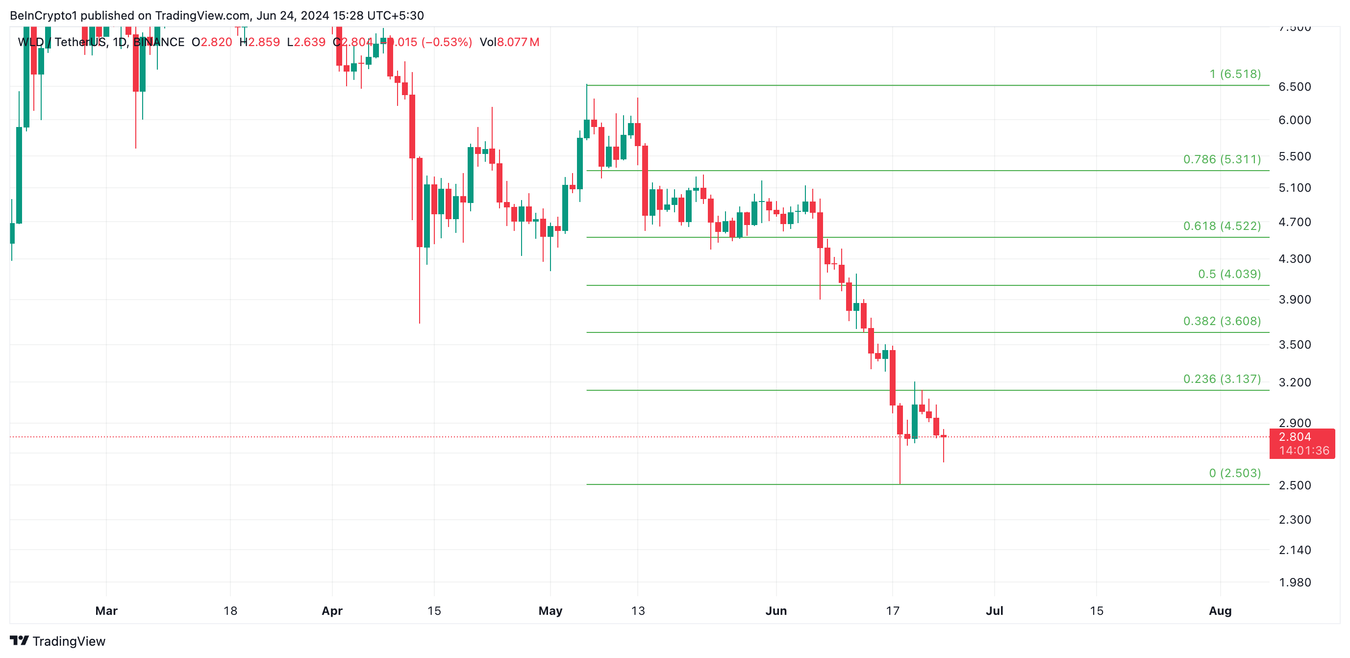 إذا استمر هذا الاتجاه، قد ينخفض سعر WLD إلى 2,50 دولار.