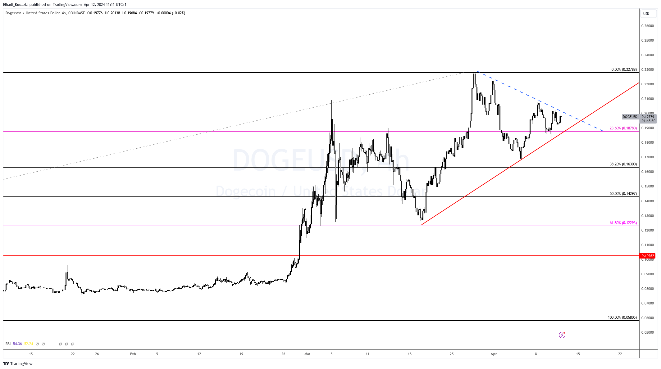 لذا، فإن اختراق العملة لمستوى 0.20 دولار قد يدفع شريحة واسعة من هؤلاء المستثمرين للتخلص من مقتنياتهم مما قد يقوض أي ارتفاعات في السعر.