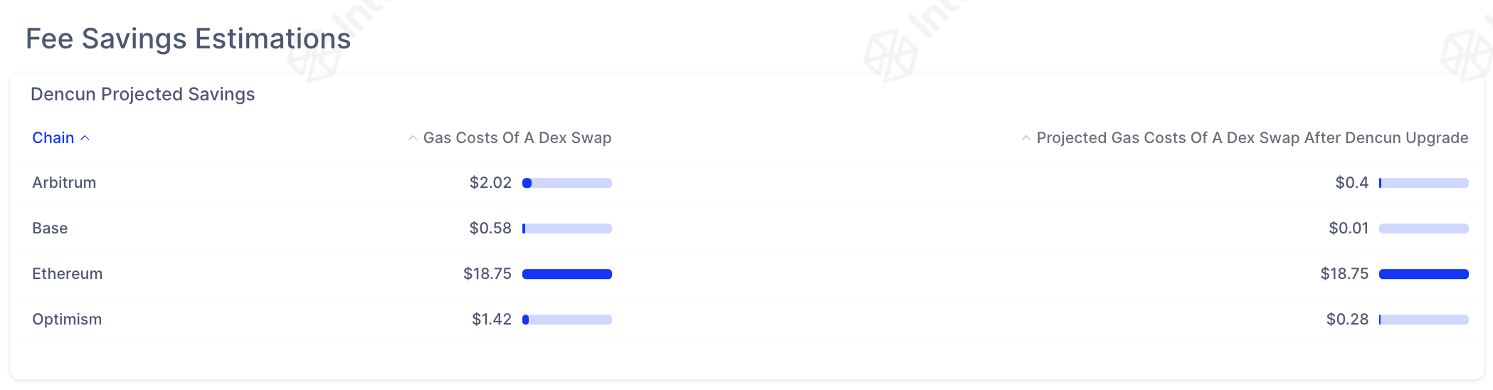 علاوة على ذلك، أدت ترقية دنكون الأخيرة إلى خفض تكاليف المعاملات بشكل كبير من خلال تنفيذ مقترح تحسين الإيثريوم (EIP) 4844. وقد أدى ذلك إلى انخفاض كبير في تكاليف معاملات الطبقة الثانية من خلال إدخال نقاط البيانات أو ما يُعرف بـ proto-dankharding. كما أدى هذا التعديل أيضًا إلى تحسين توافر البيانات على شبكات الطبقة الثانية. مما أدى إلى خفض نفقات الغاز بنسبة تصل إلى 90% على منصات معينة.