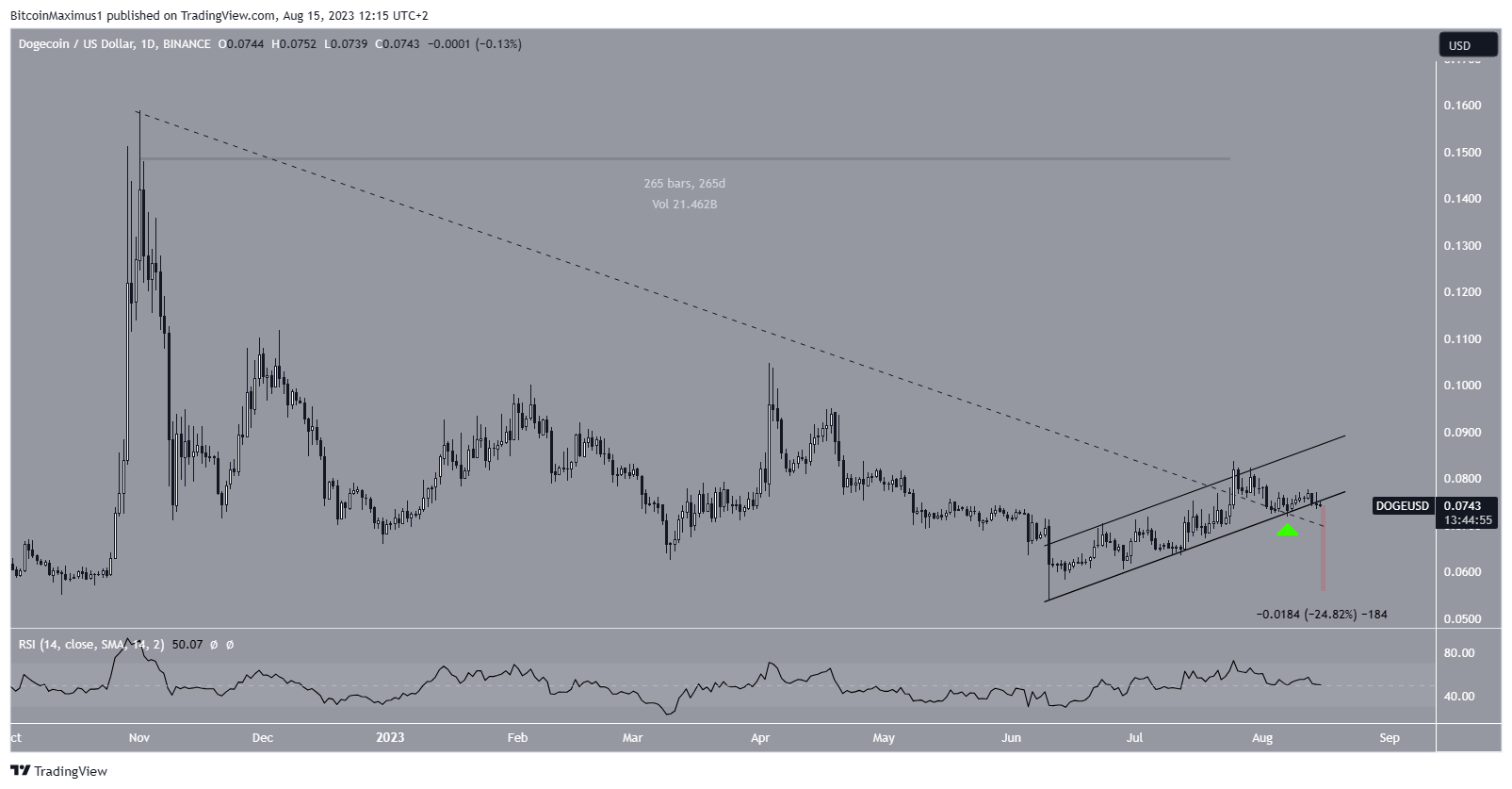 وفي 15 يوليو 2023، خرج سعر الدوج كوين أخيرًا من خط المقاومة، ليكن الخط في مكانه لمدة 805 أيام. ومن ثم ظهرت حركة مماثلة في زوج DOGE / BTC.