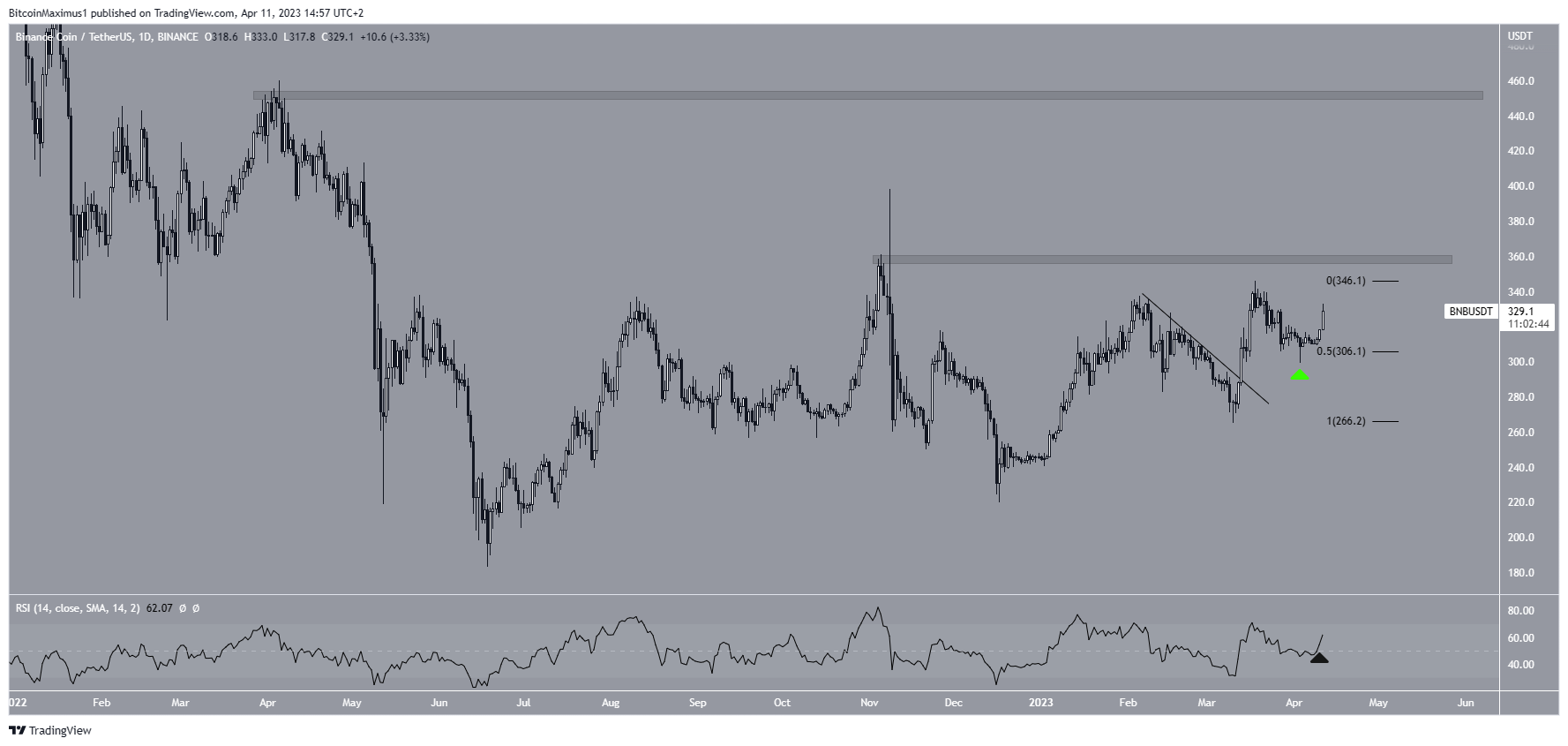 ارتفع سعر عملة BNB منذ العاشر من مارس، حيث اختراق عملة BNB خط المقاومة الهبوطي بعد ثلاثة أيام، والوصول إلى مستوى سنوي جديد عند 346.30 دولار في 18 مارس.
