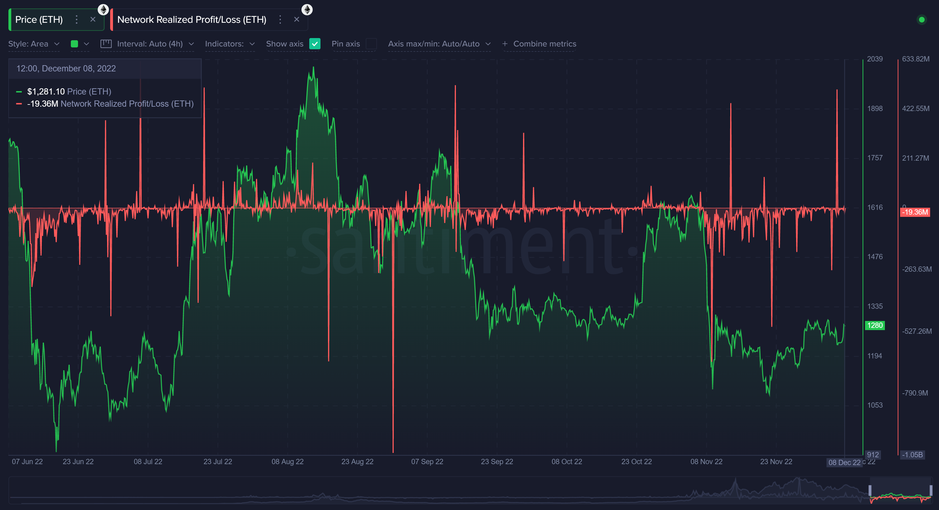 وعلى الجانب الآخر فقد يبرز نشاط متوسط العائد بين العناوين في الفترات الطويلة الأجل (سنة) قدراً من النزيف الذي تعرض إليه الأصل المشفر، فمنذ 13 شهر قد شهد سعر الإيثر نطاق سعري يقترب من 5 آلاف دولار، قبل الانخفاض أكثر من هذه القيمة في ظل ما يعانيه ايضا العديد من المتداولين من خسائر وصلت إلى النصف أو أكثر من النصف في استثماراتهم الخاصة بعملات ايثريوم ETH.