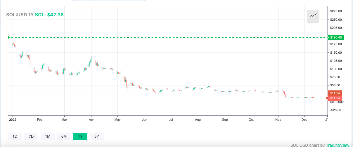 كما وصل سعر SOL إلى أدنى مستوى له عند 10.94 دولار في 22 ديسمبر 2022. قبل أن يصعد ببطء مجددا ليصل إلى 11.75 دولار يوم 27 ديسمبر. وعلى الرغم من أن الانخفاض منذ الانهيار كان كبيرًا. إلا أن توقعات سعر SOL الأكثر ترجيحًا هي استمرار الحركة الهبوطية إلى نحو 4 دولارات تقريبا.