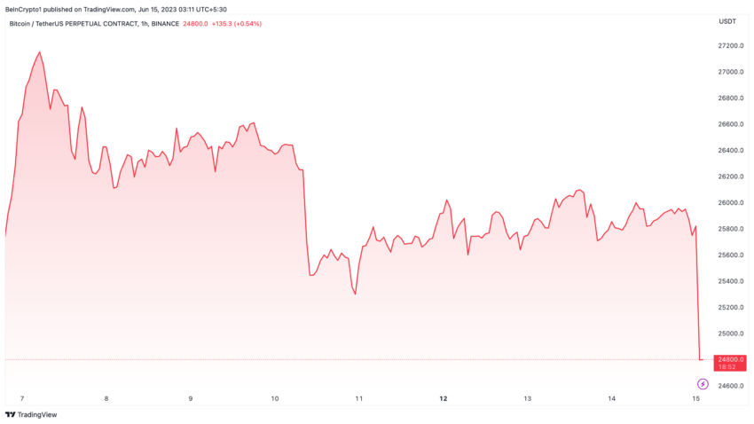 تسبب انخفاض عملة بتكوين داخل سوق العملات المشفرة في اضطراب سوق الصناعة، حيث الانخفاض بنسبة 4.11% أي إلى أسفل 25000 دولار، بما دفع بعض مراقبي السوق والمستثمرين إلى اتخاذ منحنى غير مفهوم.