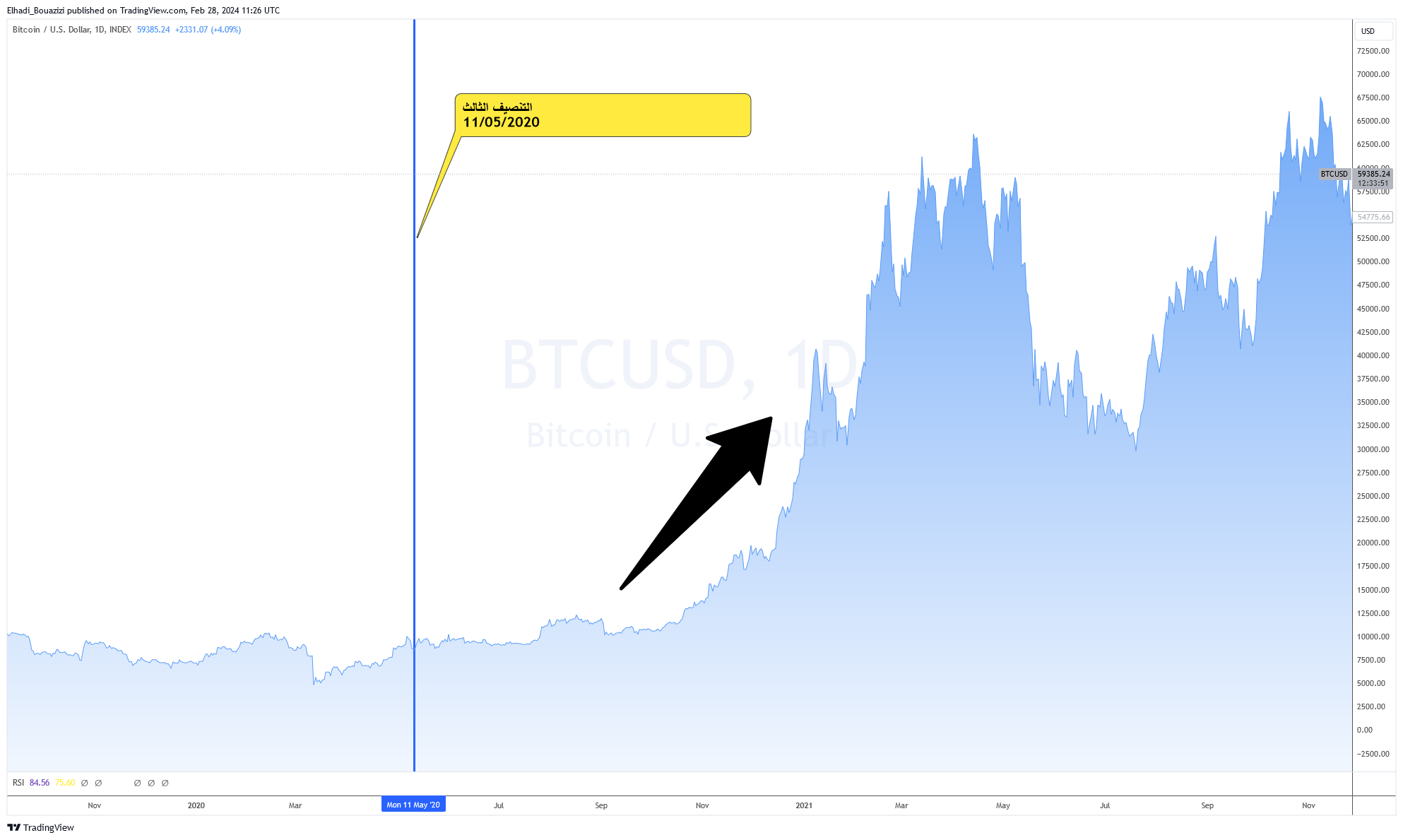 تاريخيًا، ارتبط هذا الحدث بارتفاعات كبيرة في سعر بيتكوين.