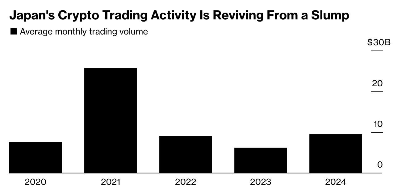 تعافت تجارة العملات المشفرة اليابانية خلال عام 2024، وقد تساعد عدة تدابير محددة في تعزيزها أكثر. بالطبع، أكثر التغييرات المحتملة جاذبية هي خفض الضريبة على أرباح العملات المشفرة، من 55% إلى 20%، مشابهة للأسهم. كما ذكرت FSA زيادة في حماية المستهلك، ودعا قادة الأعمال إلى تخفيف القيود.