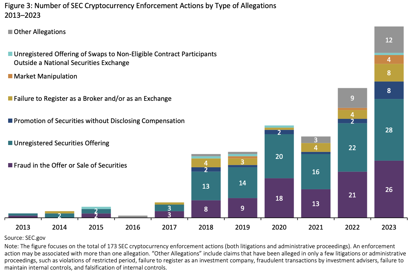 وبالتالي، أدت الإجراءات الصارمة التي اتخذتها هيئة الأوراق المالية والبورصات إلى اتخاذ عدد قياسي من إجراءات الإنفاذ. مما أدى إلى تكثيف الأجواء التنظيمية في صناعة العملات المشفرة.