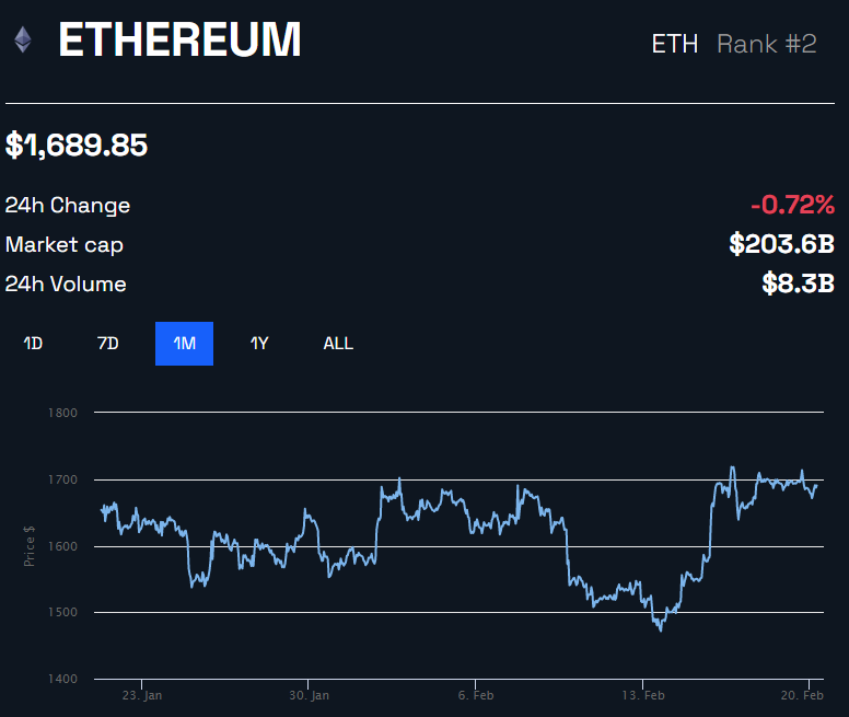 ومازال جزء كبير من رهان الإيثر يتسم بالثبات وفقاً لما ذكره الخبراء في الثامن عشر من فبراير.