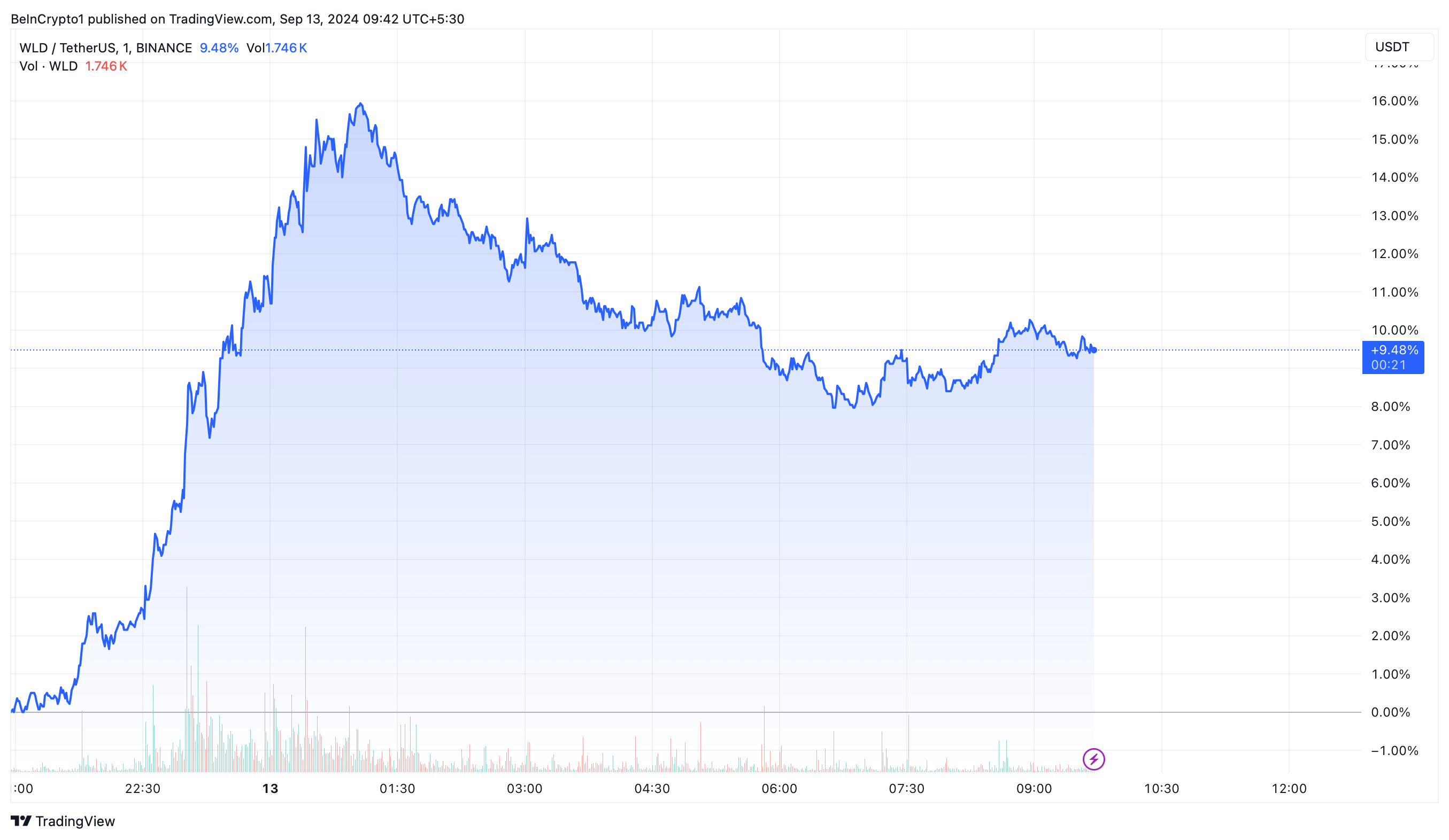 في الوقت نفسه، شهدت وورلدكوين (WLD) ارتفاعًا كبيرًا، حيث ارتفعت بنحو 16% بعد الإعلان. ومع ذلك، وحتى وقت كتابة هذا التقرير، استقرت عند زيادة بنسبة 9,5%، وتتداول عند 1,518 دولار.
