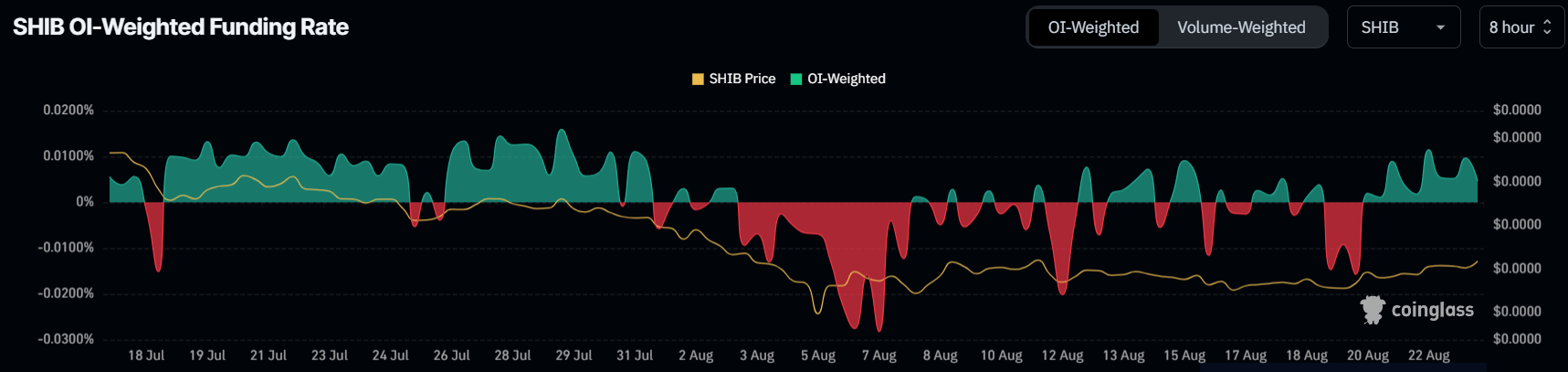 ارتفاع في سعر شيبا إينو كان متوقعًا منذ وقت طويل، والمستثمرون الآن يدفعون العملة الميمية للأعلى. SHIB تتلقى حاليًا دعمًا مستمرًا من مستثمريها، كما يشير معدل التمويل الإيجابي المستقر. هذا الدعم المستمر ضروري للحفاظ على الزخم الصعودي وقد يشير إلى زيادة الثقة بين مجتمع Shiba Inu.