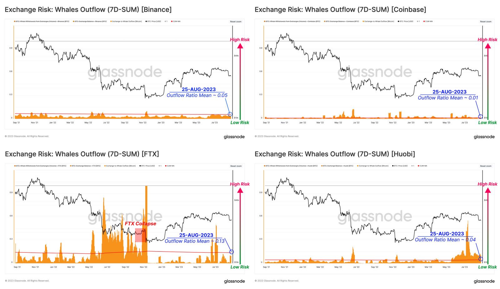كما أظهرت كل من بينانس وكوين بيز نسبة سحب منخفضة على مدار العامين الماضيين. ومع ذلك، شهدت الحيتان ارتفاعًا مستمرًا في نشاط السحب مقارنة برصيد Huobi من البيتكوين خلال الأشهر القليلة الماضية.