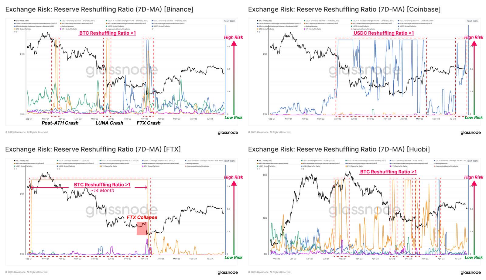 وأوضحت المنصة نموذج FTX كمثال رئيسي لمؤشرات المخاطر التي يجب الانتباه إليها. أما عن شركة هوبي، فإن الانخفاض المستمر في رصيد الصرف عبر الأصول الأربعة الرئيسية يشير إلى وجود درجة من الحذر.