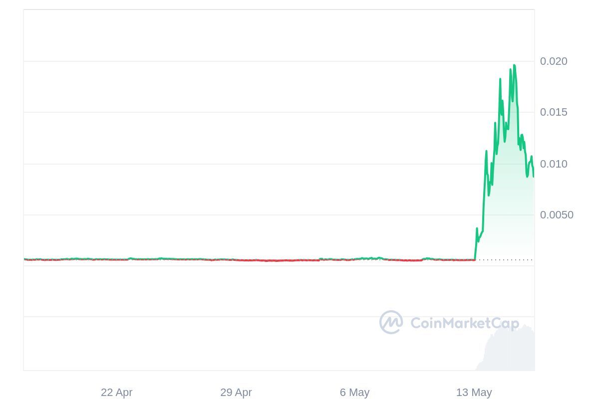 و لقد بلغ سعر هذه العملة التي كانت قبل أيام فقط مخفية في غياهب النسيان إلى أعلى مستوى لها على الإطلاق، وارتفع حجم التداول اليومي بنسبة 374.48%.