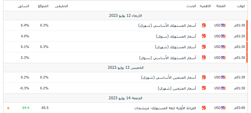 ويصدر مؤشر أسعار المستهلك الأمريكي (CPI) يوم الأربعاء. ويوم الخميس مؤشر أسعار المنتجين (PPI) لشهر يونيو. بالإضافة إلى بيانات مؤشر ثقة المستهلك.
