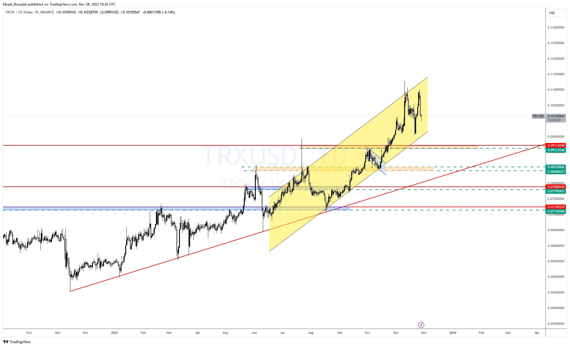 فسعر عملة ترون TRX يتحرك في اتجاه صاعد منذ 14 نوفمبر من عام 2022. أي مباشرة بعد انهيار بورصة FTX. و لقد زادت حدة الصعود في منتصف يونيو الماضي بعض بداية ملحمة صناديق ETF.