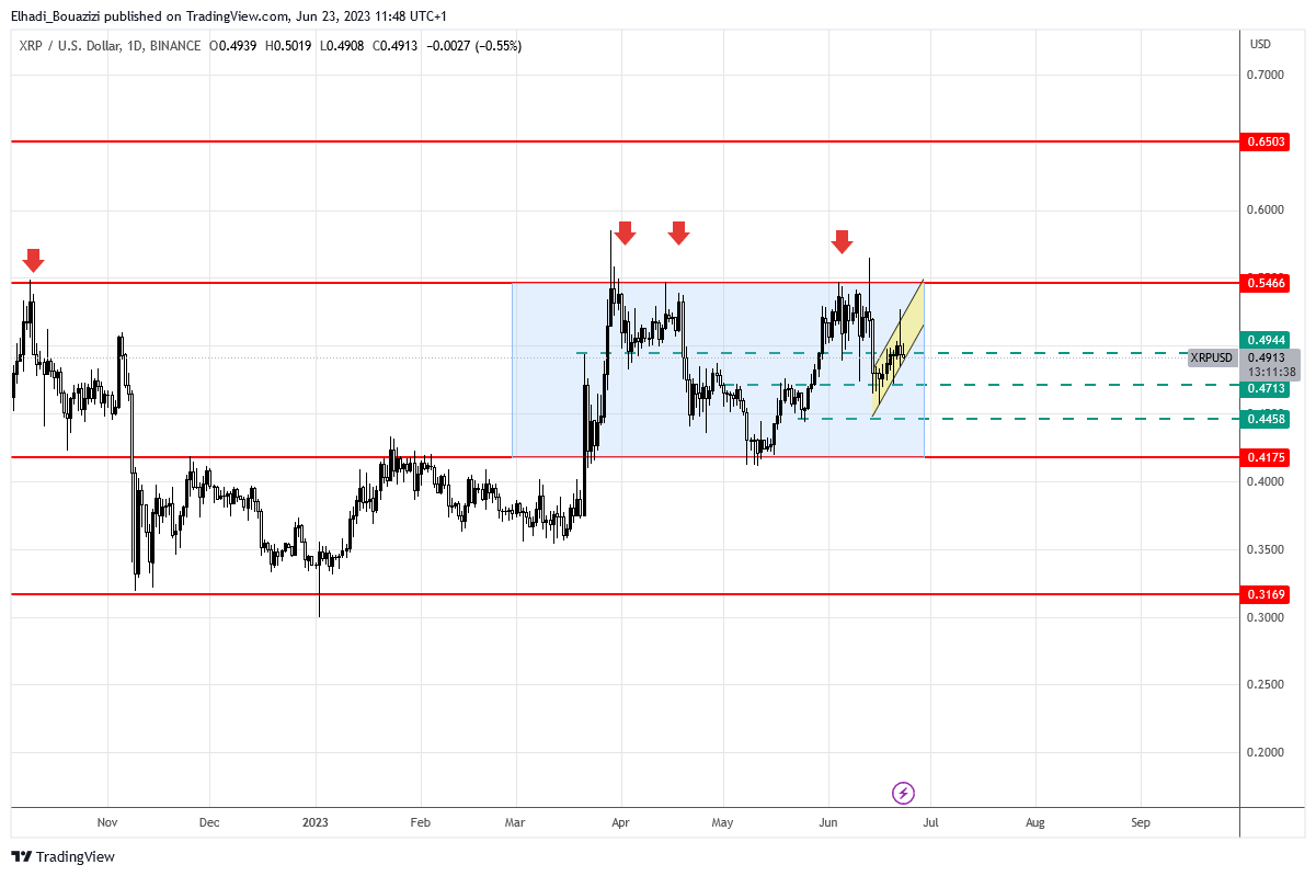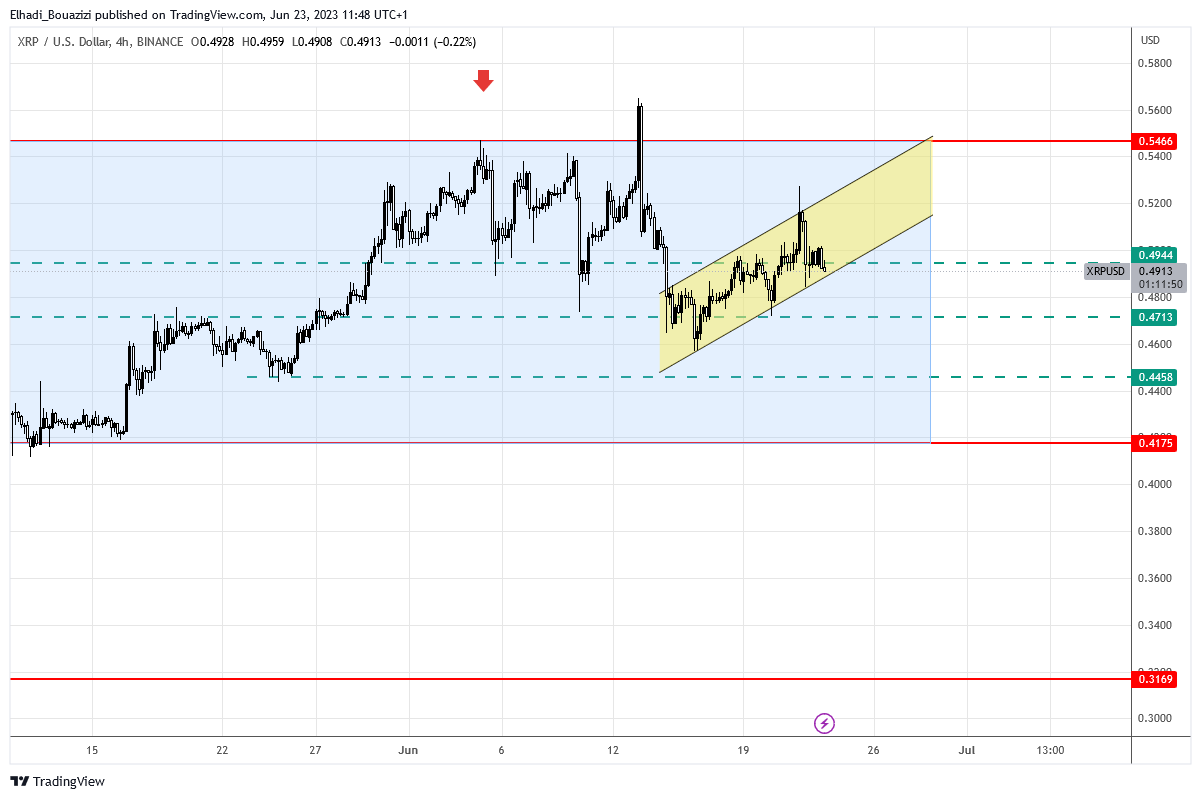 على الرسم الباني 4 سا ، سعر ريبل XRP يتحرك في قناة سعرية صاعدة.