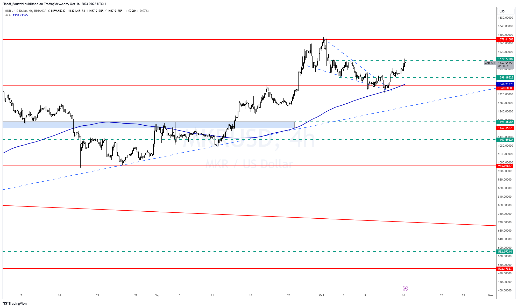 Sponsored Sponsoredالآن، سعر مايكر MKR يواجه مستوى المقاومة المتوسط القوة عند سعر 1480 دولار. في حال اختراقها فإن الهدف التالي هو 1580 دولار.