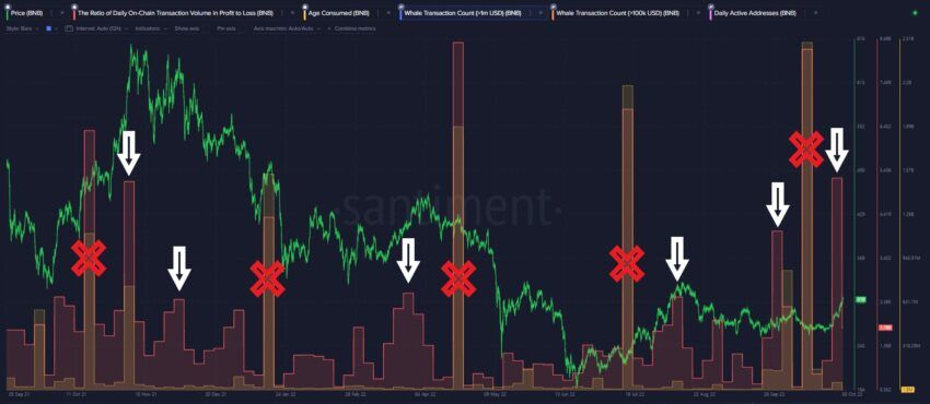 وشارك محلل كريبتو سانمون عبر اسم مستعار على تويتر أرتفاع أسعار BNB ومن ثم تحقيق أرباح كبيرة مع عدم الارتفاع لحجم المعاملات الخاصة بكبار مستثمري العملة.