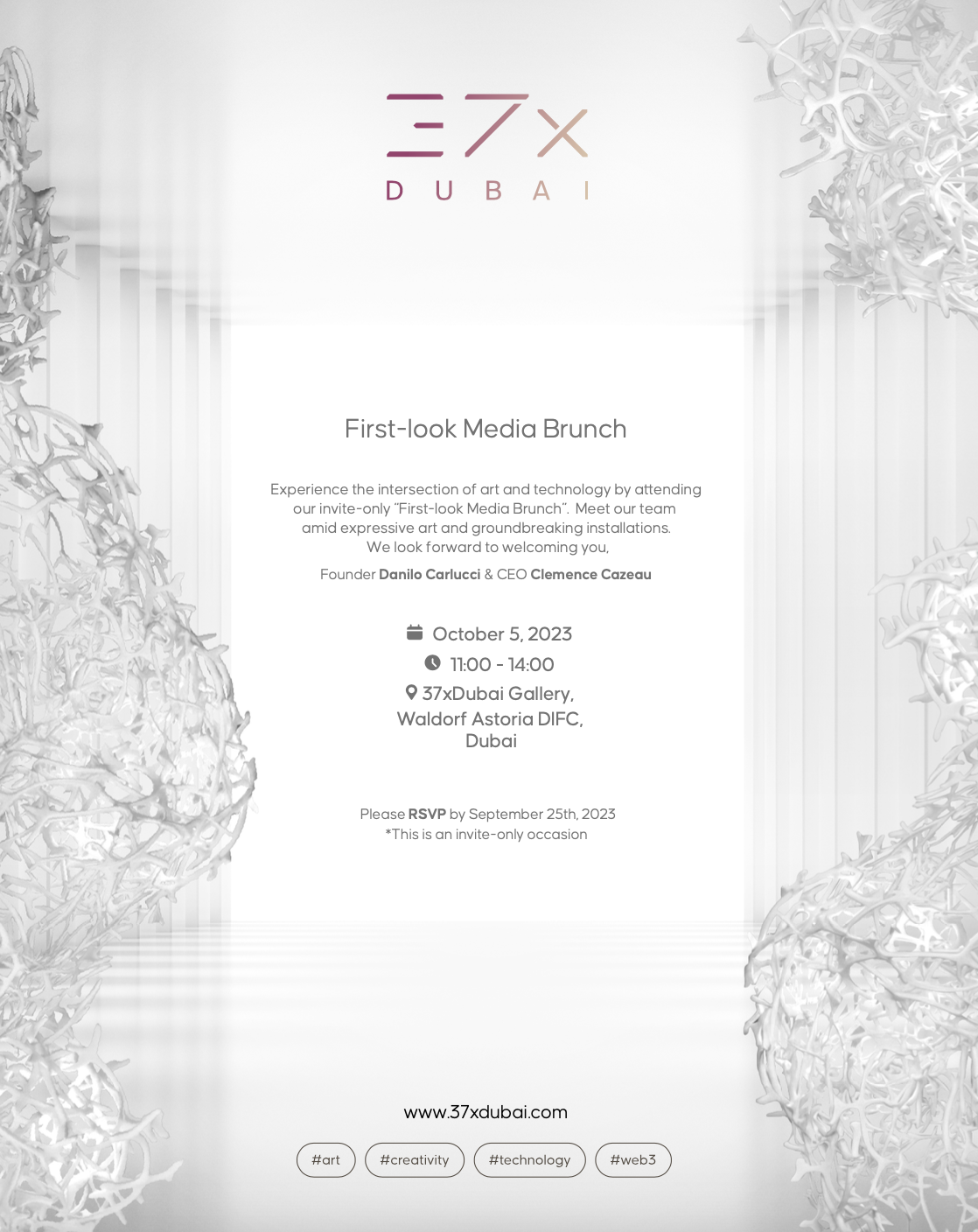 في قلب معرض 37xDubai يكمن الاتحاد بين الفن والتكنولوجيا. 37xDubai هو أكثر من مجرد معرض، فهو مساحة ديناميكية مصممة لإشراك وتثقيف والتواصل وإلهام هواة الجمع والمتحمسين من جميع الأنواع. ولهذا السبب، لا يقوم الفريق، بقيادة المؤسس دانيلو س. كارلوتشي والرئيس التنفيذي كليمنس كازو، بتنظيم معارض الفن المعاصر والرقمي فحسب، بل أيضًا أعضائه الخاصين والتجارب الفاخرة وشراكات العلامات التجارية.