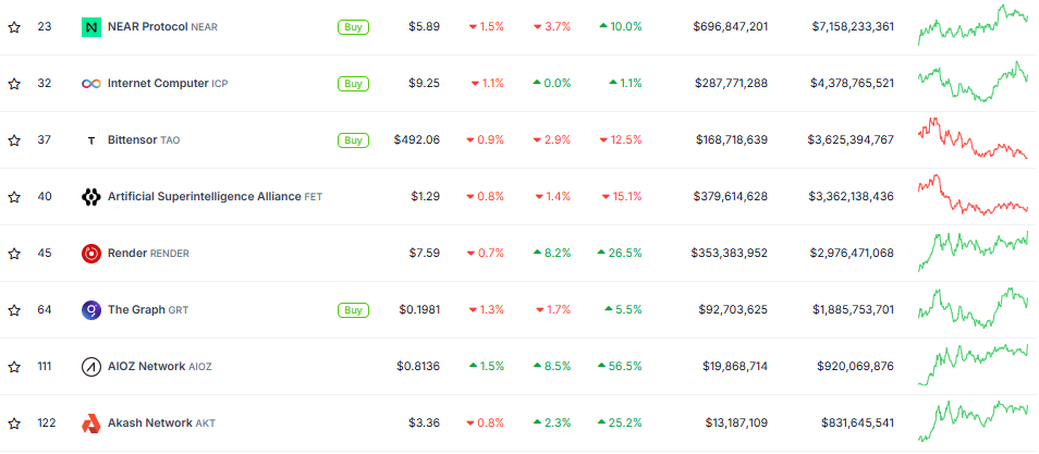 من المرجح أن يكون للمشاعر المحيطة بأسهم الذكاء الاصطناعي قبل إصدار أرباح الربع الثالث لنفيديا تأثير على العملات المشفرة المركزة على الذكاء الاصطناعي مثل Render (RENDER)، وورلدكوين (WLD)، نير بروتوكول (NEAR)، وبيتنسور (TAO). بالإضافة إلى ذلك، قد يرى مشروع DePin Aethir (ATH)، المعروف بقدراته على تقديم الرسوميات بواسطة معالجات الرسوميات والملقب بـ "نفيديا العملات المشفرة"، تأثيرات أيضًا من تقرير الأرباح.