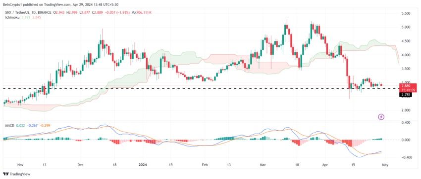 سعر عملة Synthetix (SNX) يتداول حاليا عند سعر 2.89 دولار، وهو أعلى بقليل من خط الدعم 2.78 دولار. ولقد نجح في البقاء فوق خط الدعم هذا على الرغم من أنه شهد انخفاضًا كبيرًا في الأيام الأخيرة.