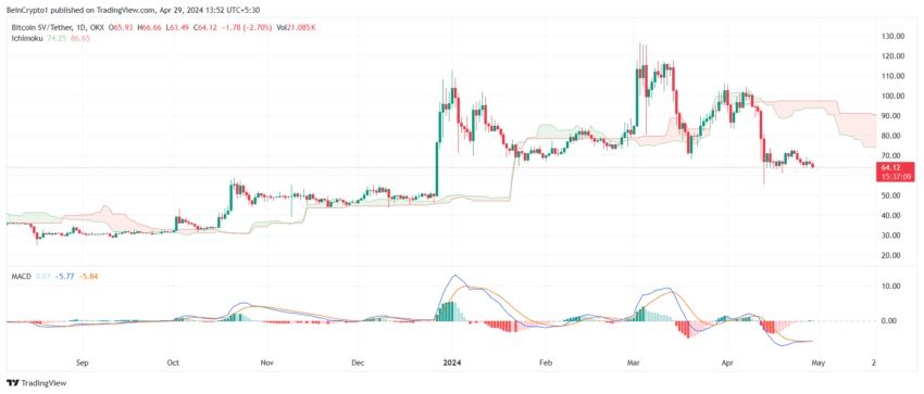 عملة بيتكوين SV (BSV) هي نتاج انقسام كامل أو هارد فورك عن شبكة بيتكوين كاش (BCH). لقد انخفض سعر BSV منذ بداية أبريل. سعر العملة البديلة يتداول الآن عند 64 دولار في وقت كتابة المقال، وهو أدنى مستوى لها في عام 2024.