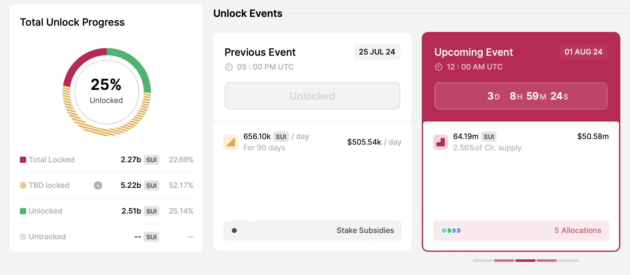 - عدد الرموز المميزة المطلقة: 64,19 مليون SUI