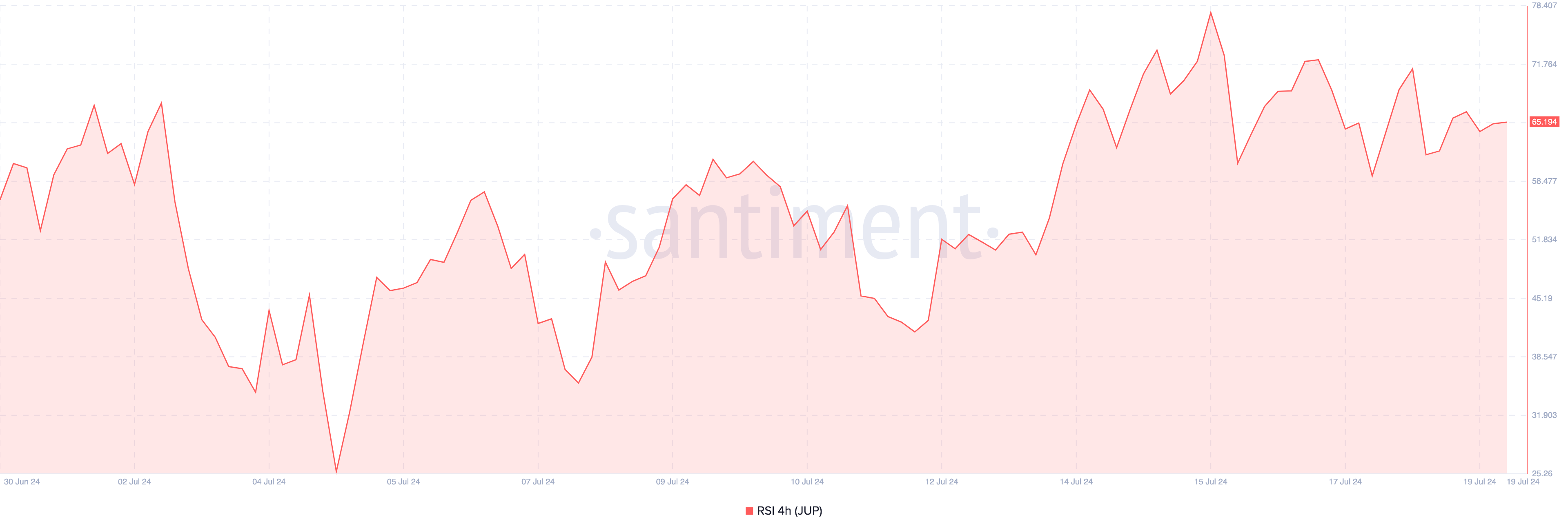 مؤشر القوة النسبية لعملة جوبيتر JUP . المصدر: Santiment