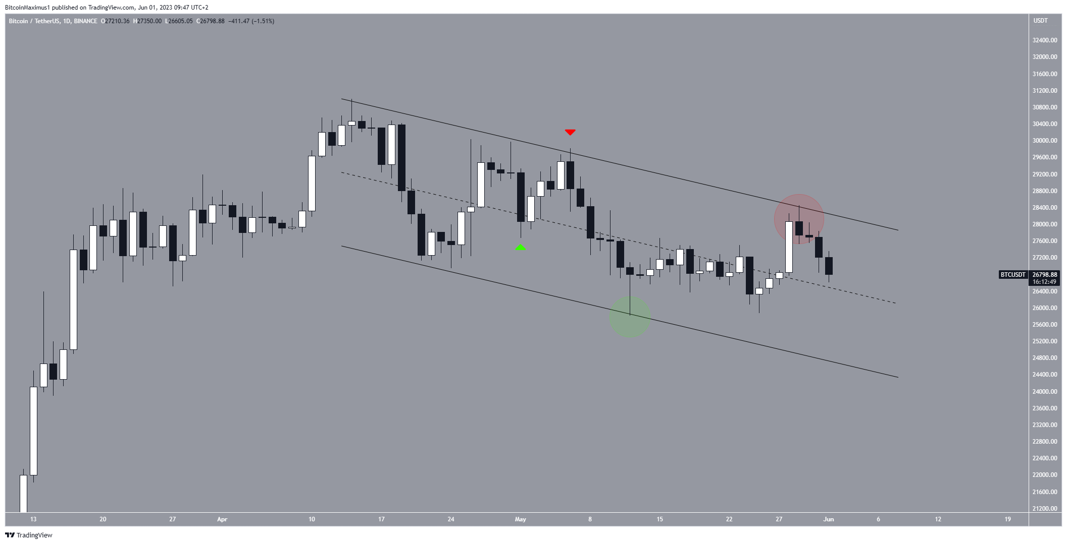 Sponsoredوخلال بداية شهر مايو، غرّد خبير التشفير TheTradingHubb بتوقعه أن السعر سيصل إلى القمة المحلية بالقرب من 30 ألف دولار قبل أن ينخفض نحو 26500 دولار.
