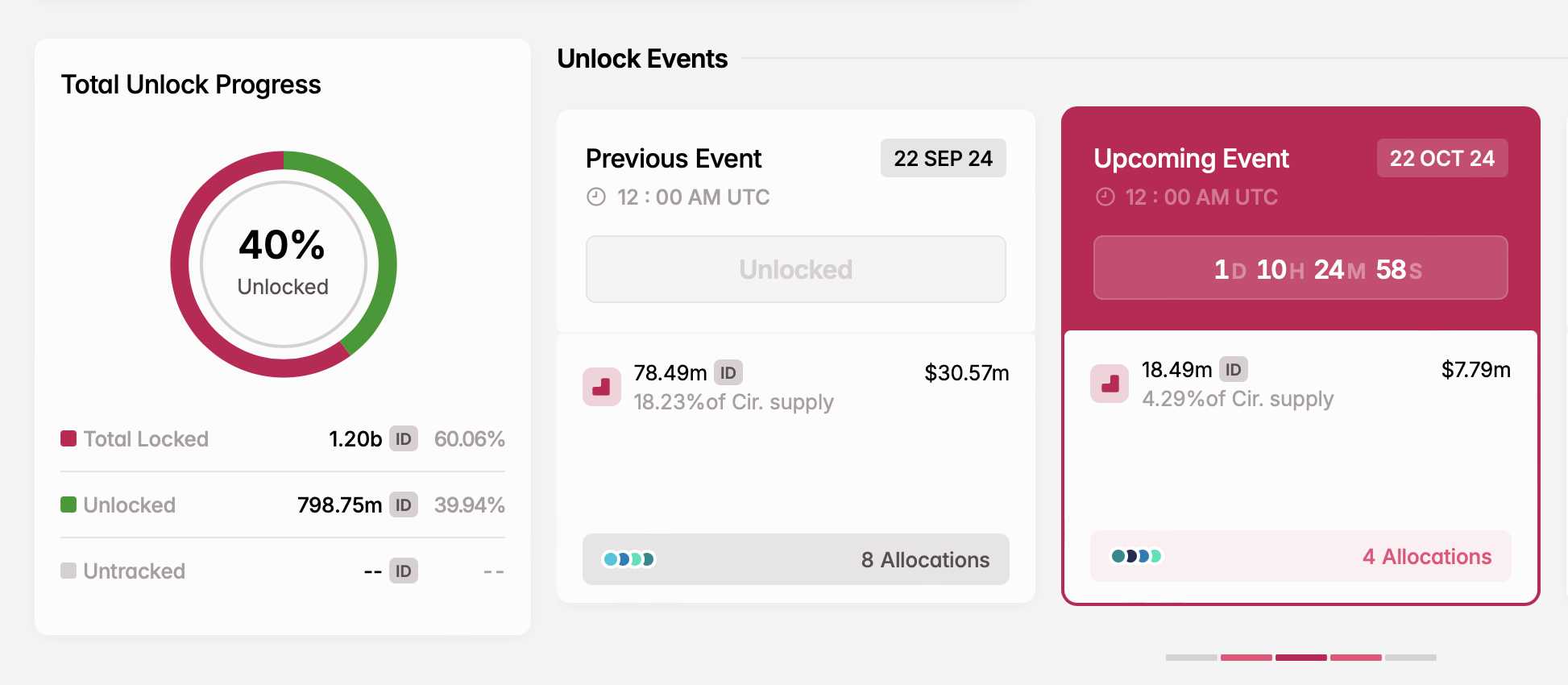 بروتوكول إعادة الرهن المبني على إيثريوم، إيجنلير، بدأ أكتوبر بإدراج رمزه EIGEN في البورصات الكبرى. أيضا، في 22 أكتوبر، سيتم فتح 1.29 مليون EIGEN، بقيمة 4.56 مليون دولار حتى كتابة هذه السطور. بينما، خصص الفريق هذه الرموز لمبادرات المجتمع المستقبلية، من غير المحتمل أن يؤثر الفتح بشكل كبير على سعر الرمز.