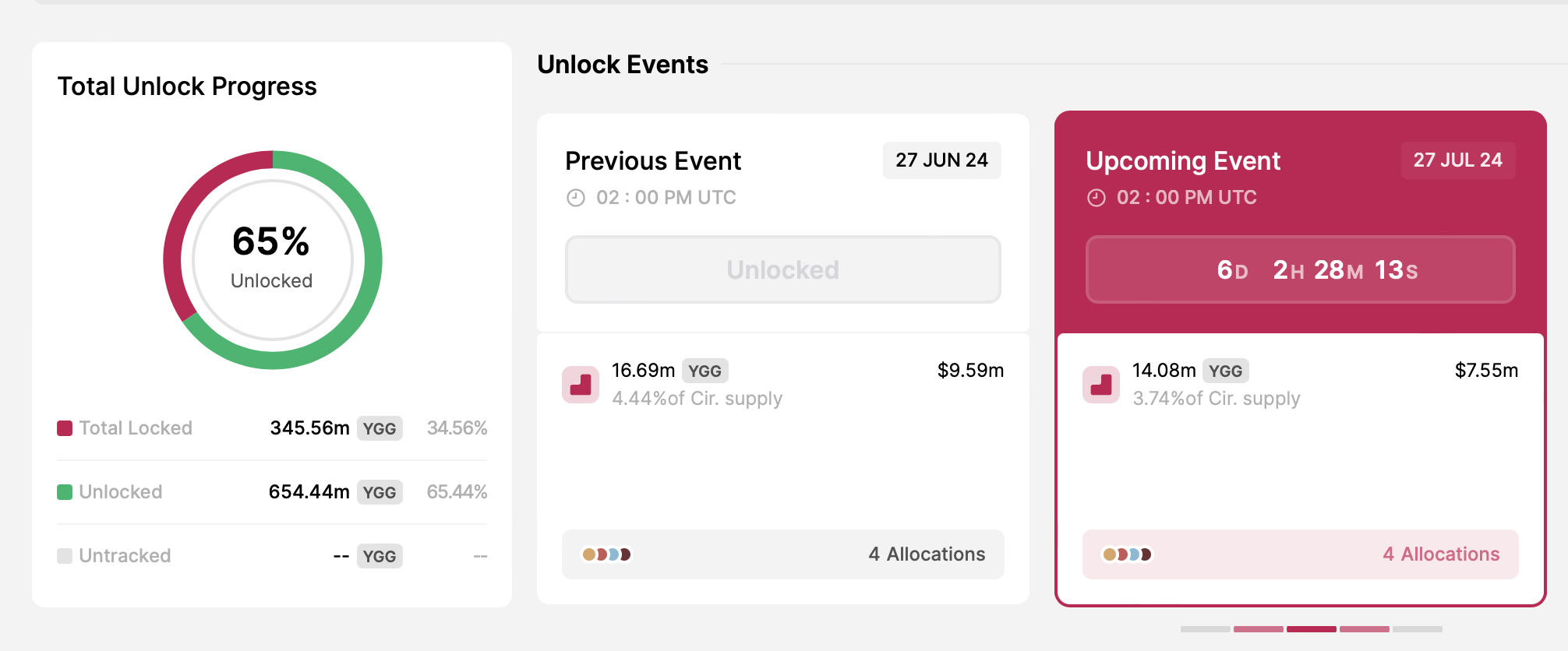 في غضون أيام قليلة، ستطلق YGG جزءًا كبيرًا من رموزها. كما سيتم توزيع هذه الرموز بين المجتمع، المؤسسين، المستثمرين، والخزانة، مما يدعم نمو النقابة وتطوير النظام البيئي.