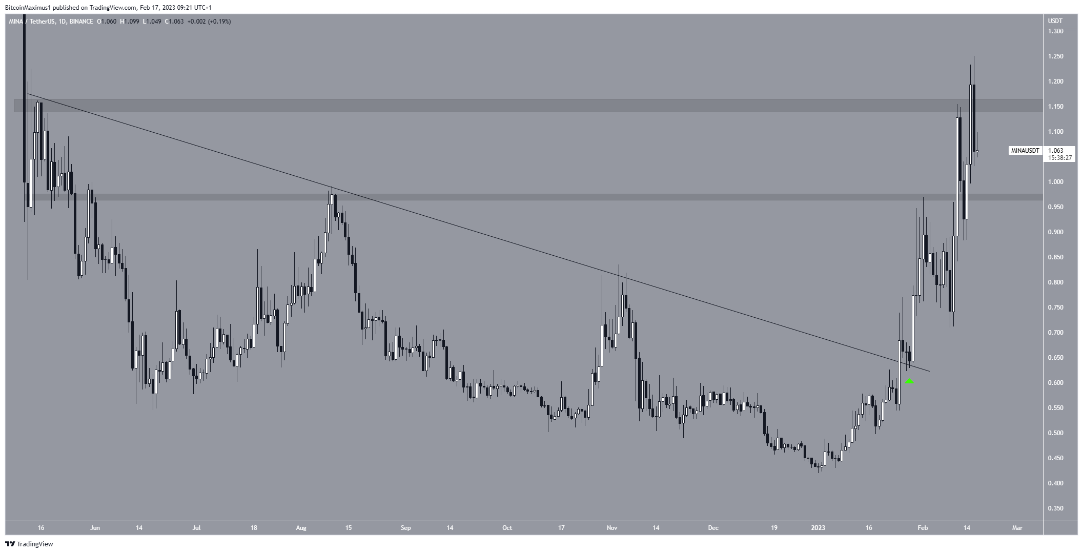 ارتفع سعر العملة منذ الخروج من خط المقاومة التنازلي في 25 يناير، وقد أدت الحركة التصاعدية إلى ارتفاع 0.49 دولار في 16 فبراير.