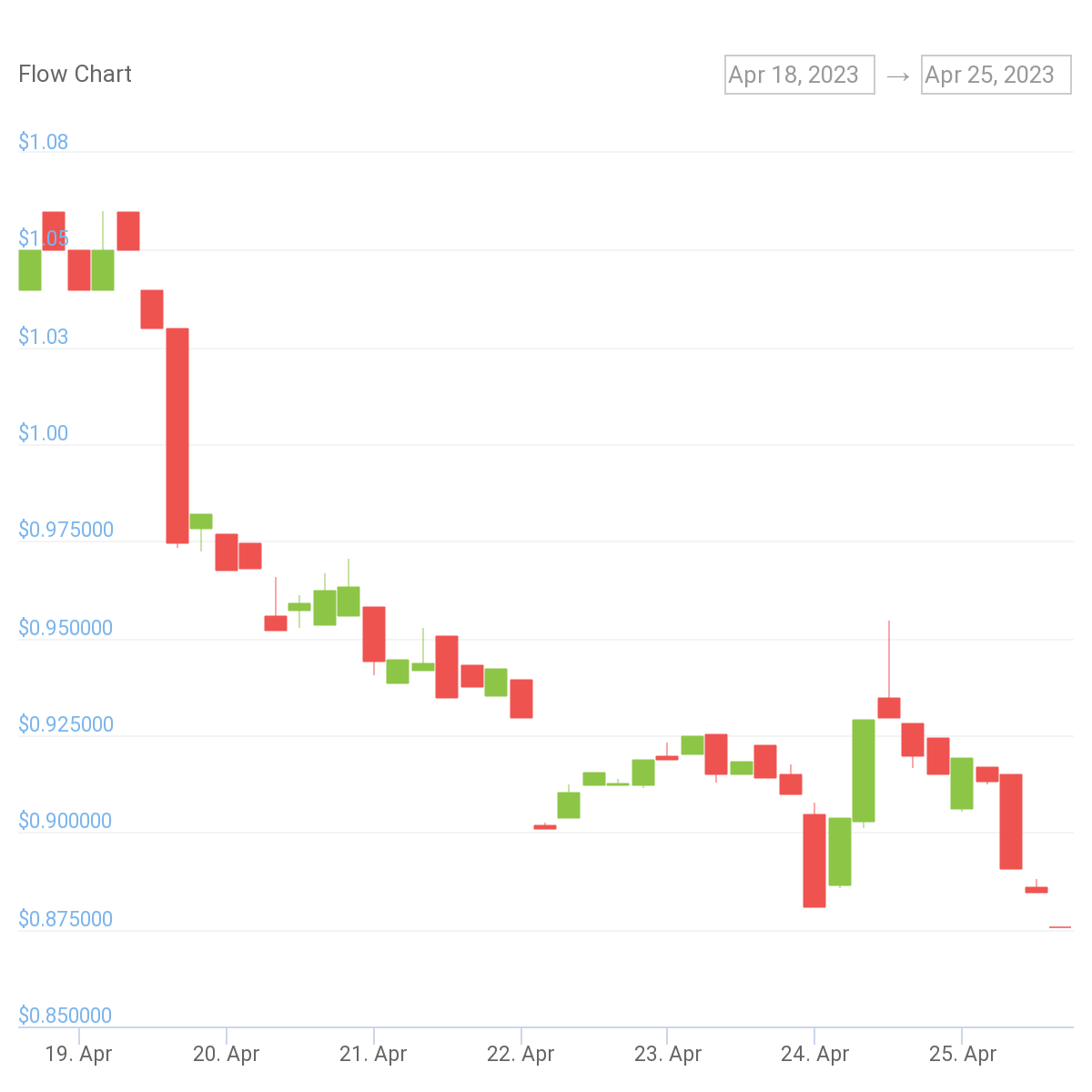 يبلغ سعر Flow (FLOW) حوالي 0.876 دولار اليوم. مع حجم تداول يومي قدره 40.72 مليون دولار. ويمثل هذا انخفاضًا في الأسعار بنسبة 4.62٪ في آخر 24 ساعة وانخفاضًا في الأسعار بنسبة 14.91٪ في آخر أسبوع. بينما وصلت القيمة السوقية للعملة حوالي 910.81 مليون دولار.